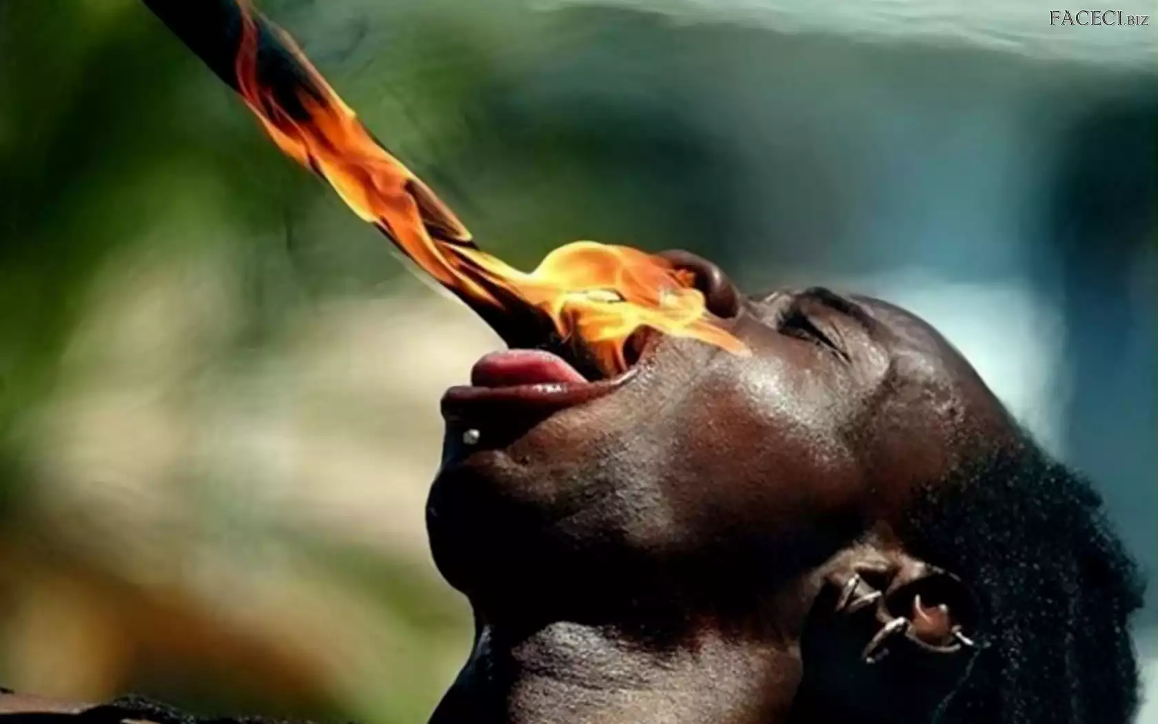 Ogień, Mężczyzna, Połykający - faceci.biz